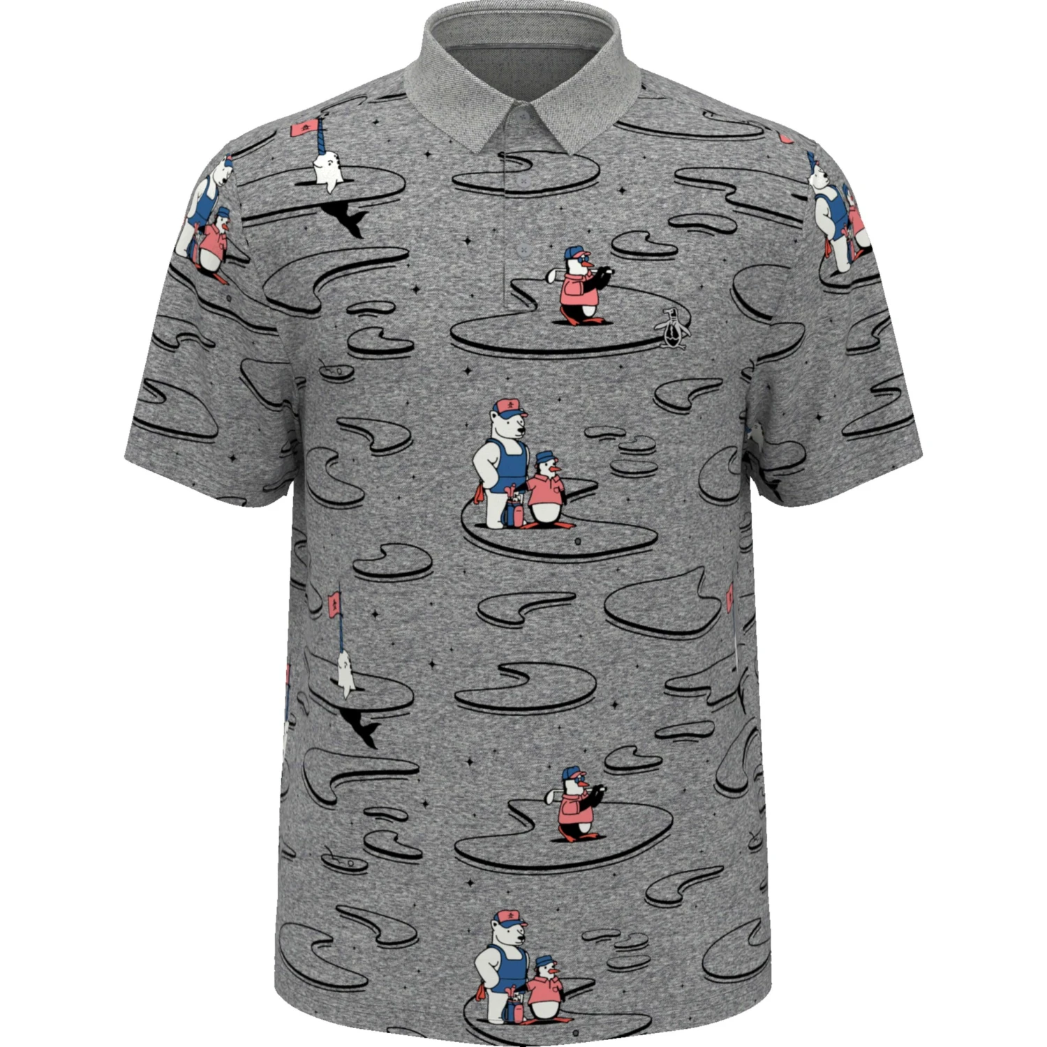 Step up your style game with this All Over Polar Pete Print Oxford Golf Polo! Featuring a cool-yet-classy print of our favorite waddling buddy, Polar Pete, this polo is sure to make your golfing days a little more penguin-tastic! With its breathable fabric and relaxed cut, it’s sure to be a hole in one!