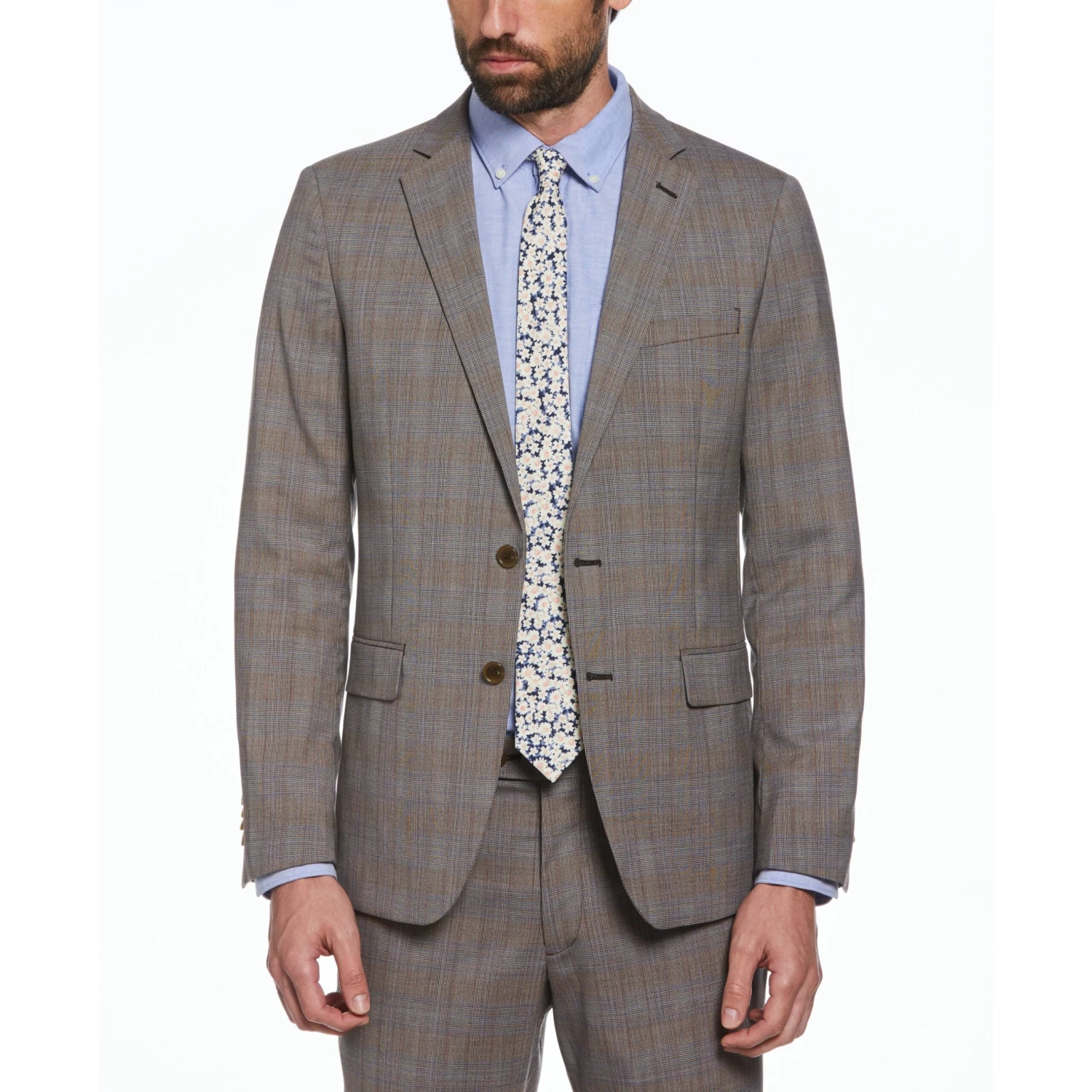 Crafted from a light wool blend jersey fabric, this Original Penguin men’s two-piece suit offers both impressive comfort and versatile style. The jacket features a two-button front closure and notched lapels for a timeless put-together look. The fully lined interior gives it a smooth and comfortable feel perfect for all-day wear. Straight flap pockets and a welt chest pocket on the exterior add storage and room for an eye-catching accent. Four interior pockets add even more space to keep your essentials organized. The suit pants feature a comfortable stretch waistband and add four more convenient pockets. This grey plaid-patterned men’s two-piece suit is comfortable, stylish and versatile, making it perfect for the office or any special occasion.