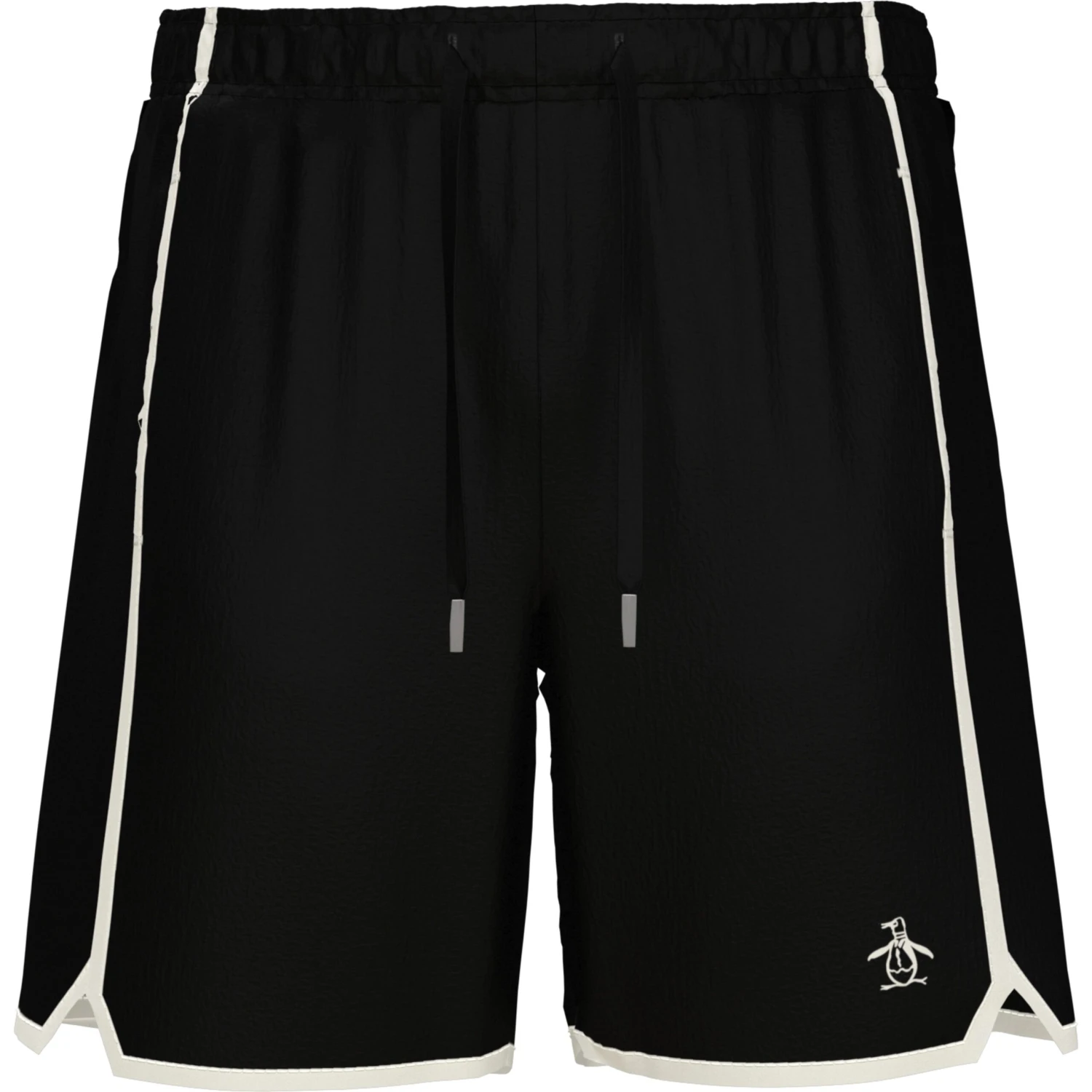 These men’s tennis shorts from Original Penguin make a great addition to your tennis wardrobe. Tightly woven plain weave fabric made with 40% Repreve™ recycled polyester from plastic bottles, makes them a durable and sustainable choice. The athletic shorts contain a hint of stretch that lets you move freely and are lined for comfort and support. Moisture wicking moves sweat away from your skin to keep you feeling dry. The 7” inseam provides the right amount of coverage so you can execute every shot with confidence.