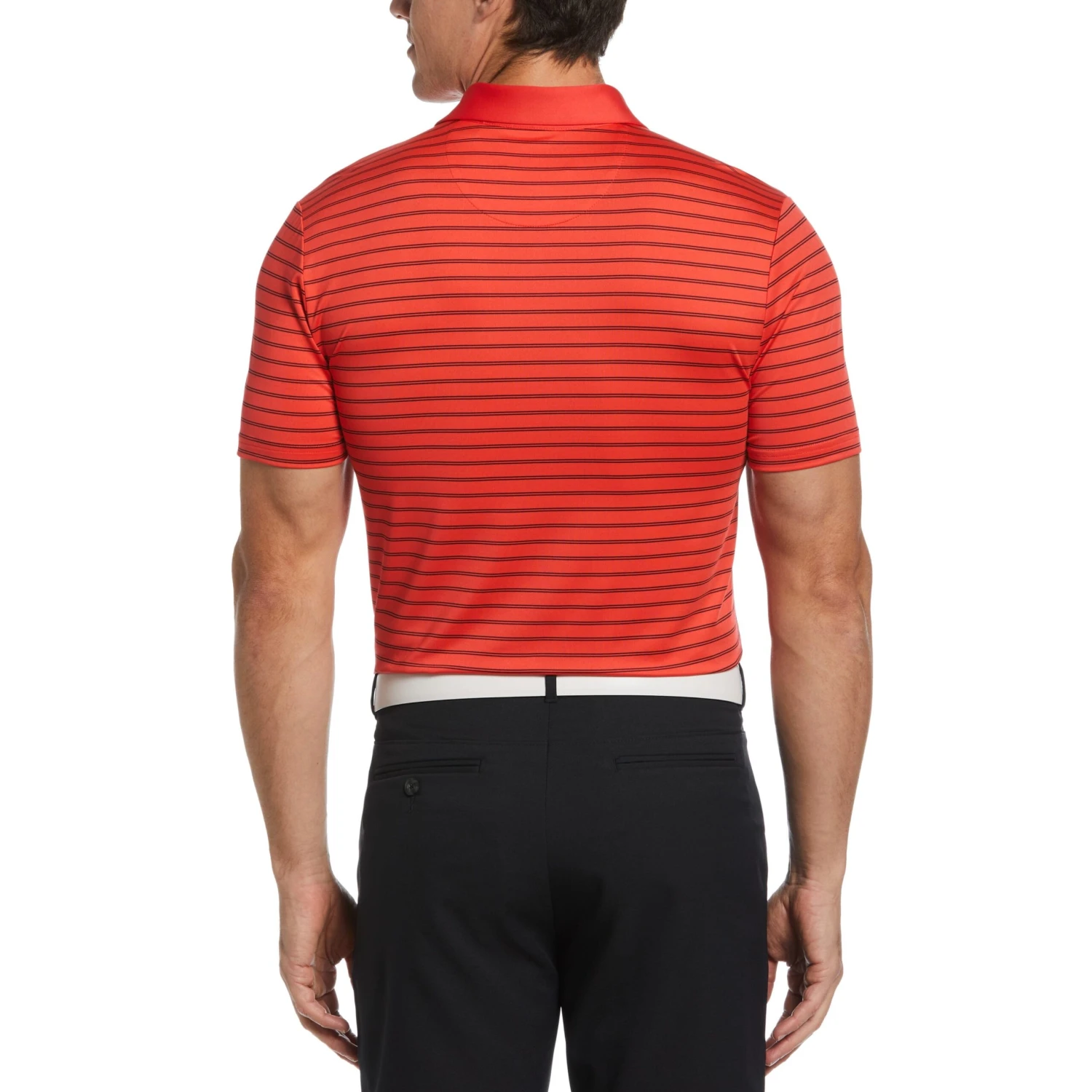 This men’s golf shirt from Original Penguin has you covered for golfing or for whatever you get up to throughout the day. The versatile two-color striped print pairs easily with a wide range of bottoms and the solid collar, placket and chest pocket add some subtle focal points. This short sleeve golf polo is crafted with jersey fabrication for a soft feel and features a self polo collar with three-button placket for custom styling options and easy on and off.