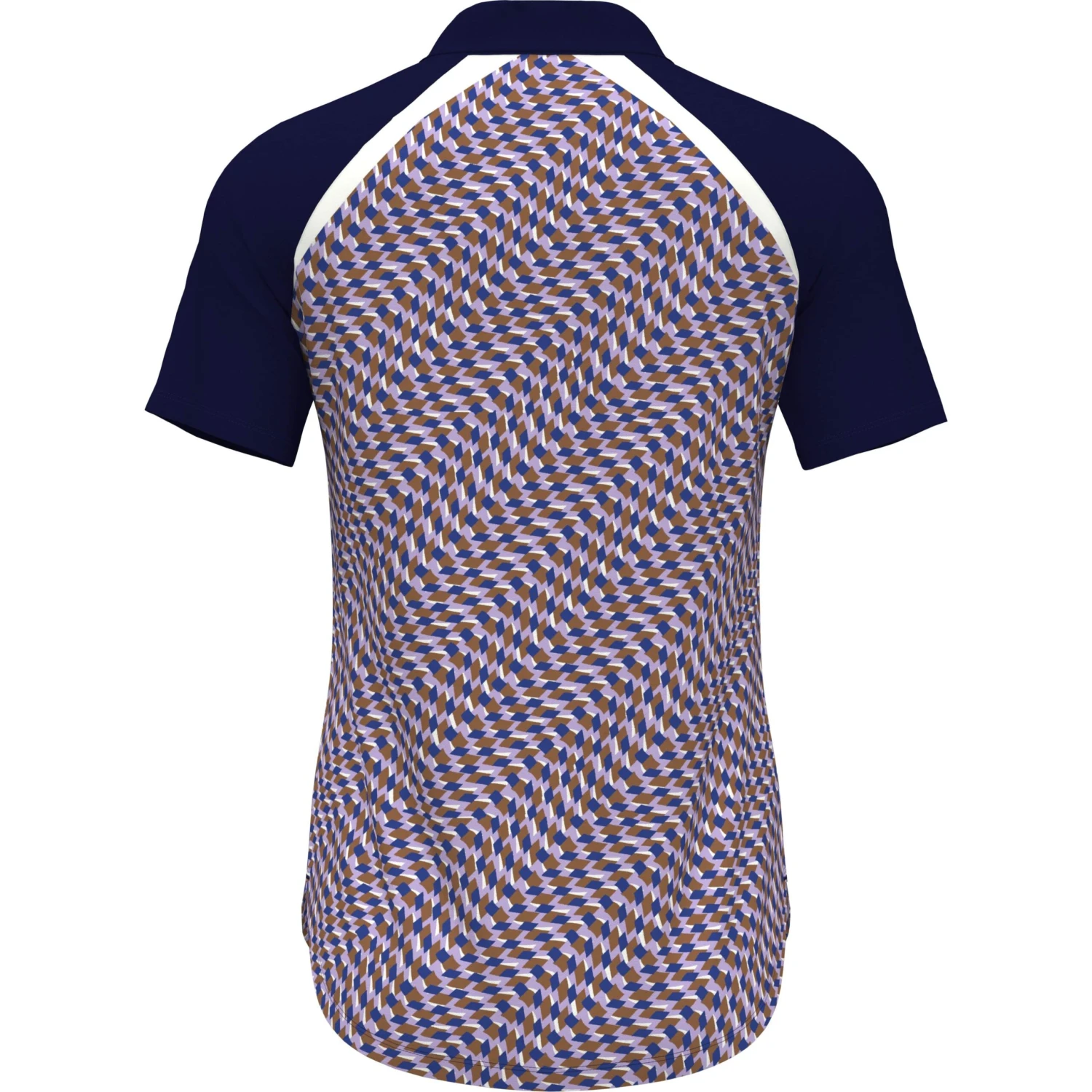 Upgrade your wardrobe with this stylish and sustainable Original Penguin women’s top. Made with lightweight single knit fabric, it features stretch to deliver a comfortable and flattering fit. A color block design and optical print pops on this short sleeve shirt giving your casual look an eye-catching finish. Made from 44% recycled polyester sourced from plastic bottles, this top makes a statement.