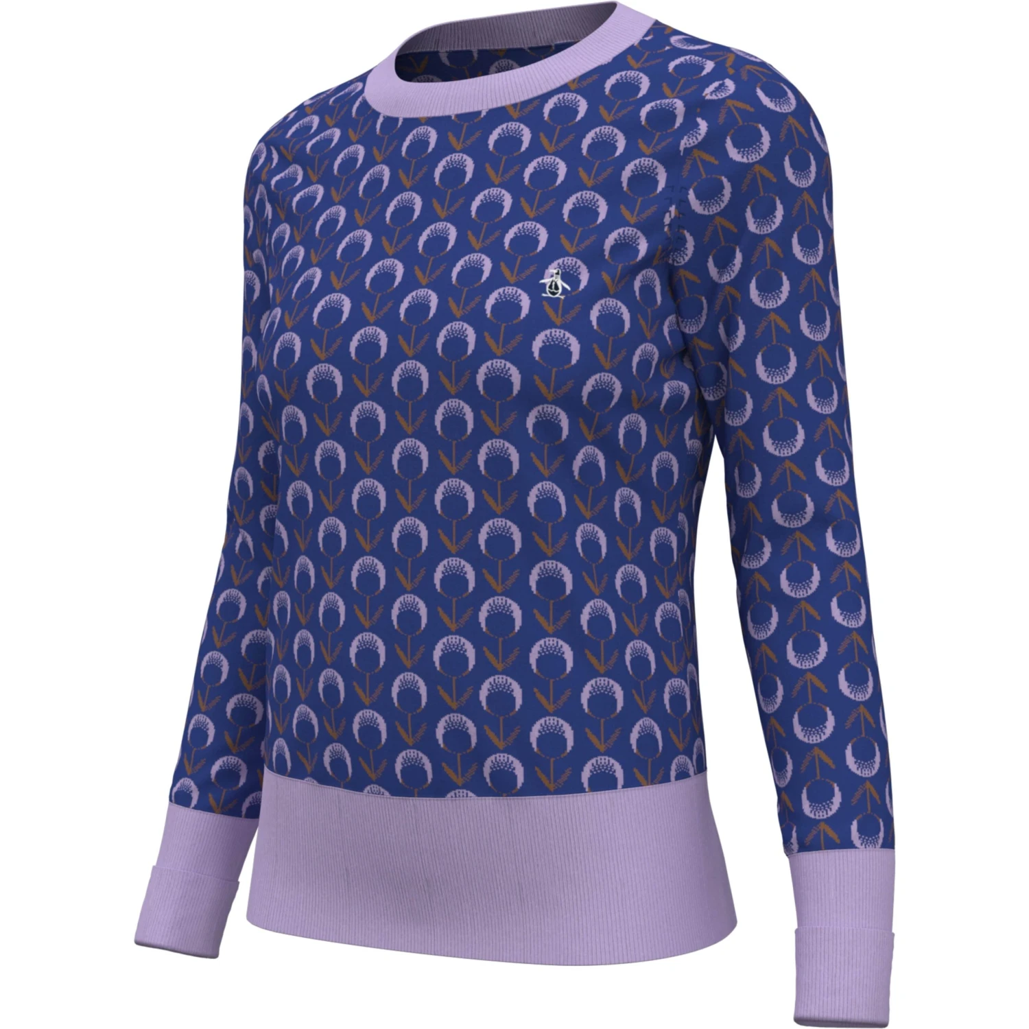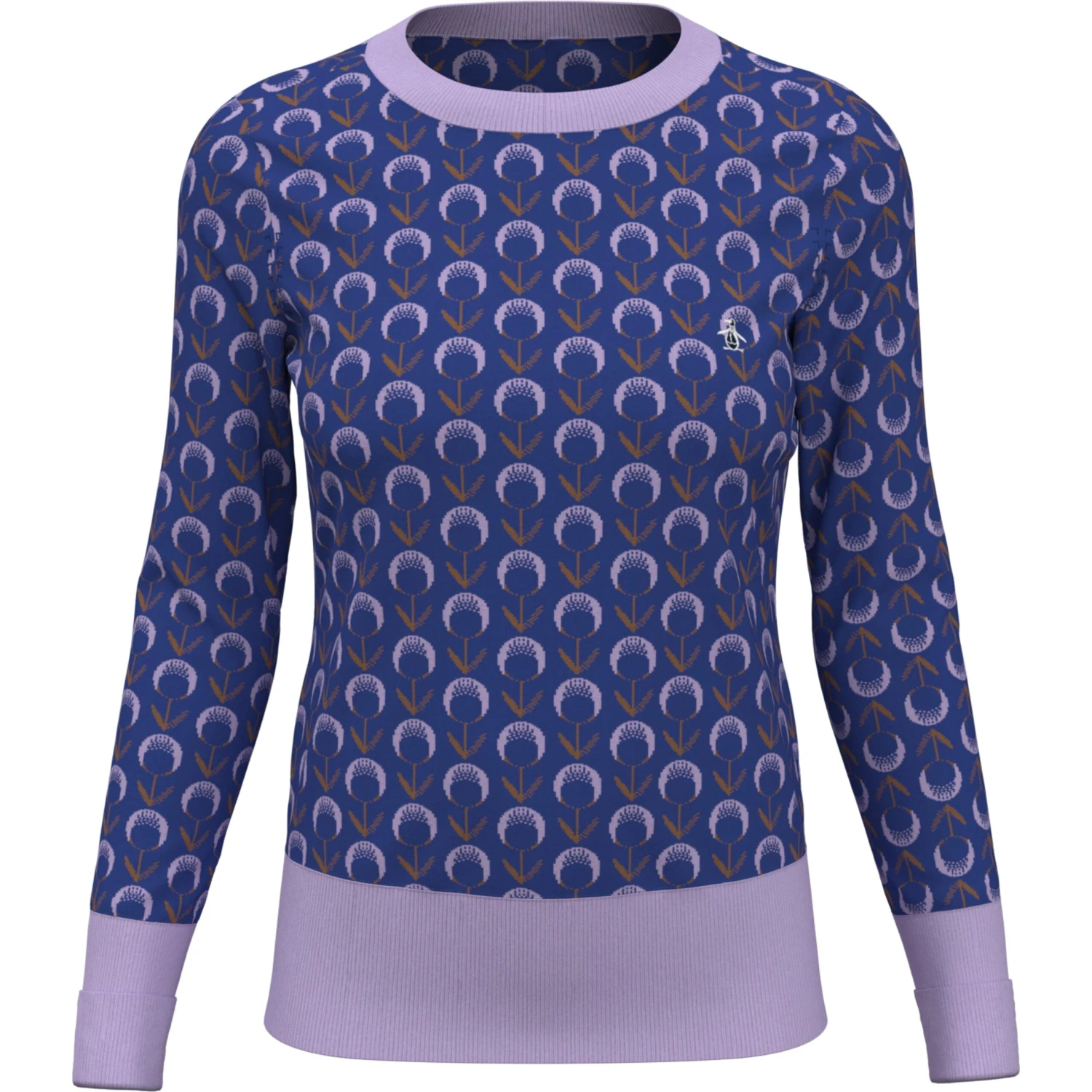 A perfect blend of style and comfort for today’s modern woman, this Original Penguin sweater features an eye-catching jacquard textured floral pattern. The long-sleeved, crew neck women’s fashion sweater features contrast-colored ribbed trim along the collar, cuffs and hem for modern flair. It’s made from a soft knit fabric with Coolmax® technology designed to keep you cool and comfortable wherever your day takes you.